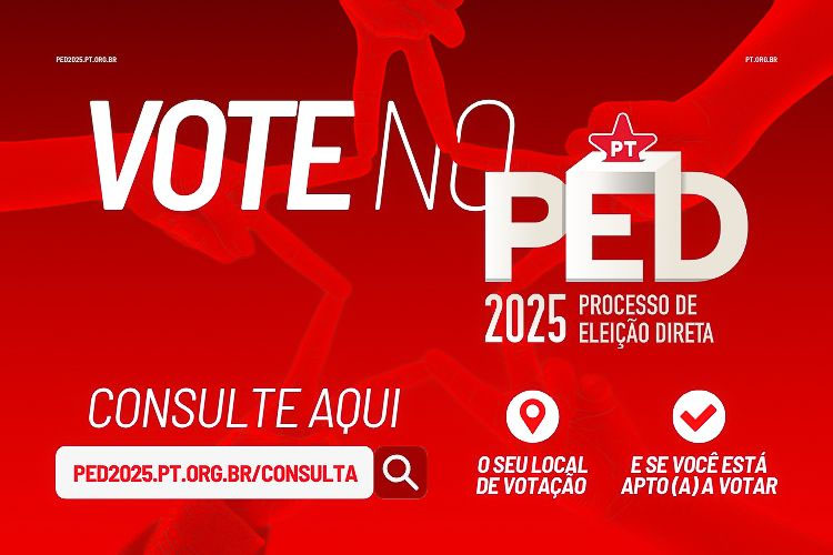 Site mostra se filiados(as) estão aptos(as) a votar no Processo de Eleição Direta, além de indicar qual o seu local de votação em 6 de julho, data do primeiro turno da eleição Para facilitar a participação no Processo de Eleição Direta (PED 2025), o Partido dos Trabalhadores disponibiliza na internet um site para a consulta sobre […]